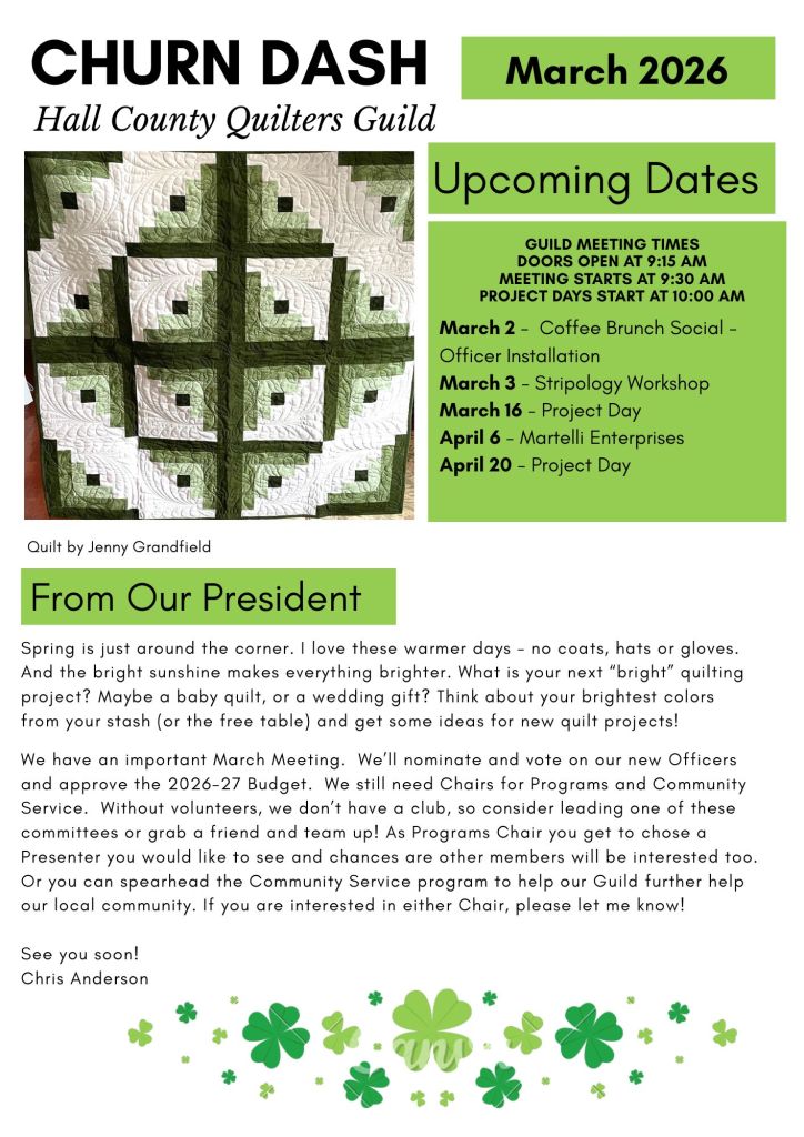 Our meetings include a program hour, “show and tell,” raffles, and a short business meeting. Our programs feature lectures, demos and classes by local quilt makers and national teachers. We are a 501 (C) nonprofit organization. We make and donate quilts and other Community donations to several local charities and organizations.